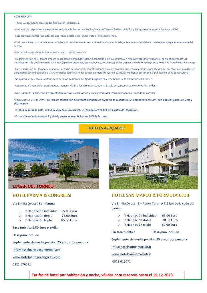 ADVERTENCIA: Aunque esta versión de la normativa se ha traducido a partir del texto original, no puede considerarse la oficial. El texto oficial, aprobado por el FSI, es únicamente el que está en italiano