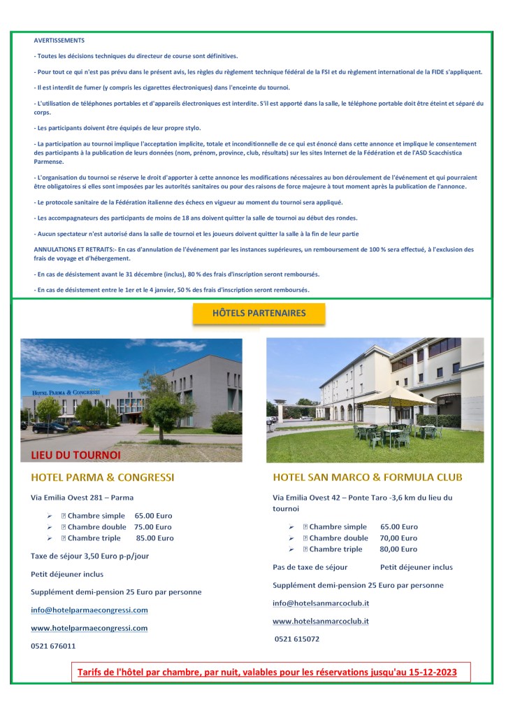 AVERTISSEMENT : Bien que cette version du règlement ait été traduite à partir du texte original, elle ne peut être considérée comme le texte officiel. Le texte officiel, approuvé par la FSI, est uniquement celui en italien.